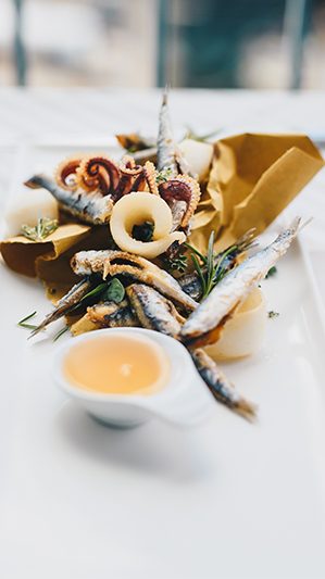 Tra i secondi le acciughe non mancano mai, specialmente fritte e accompagnate con una riduzione di aceto di mele e zucchero. Altro piatto di punta è la mupa – pesce che si ciba di soli crostacei – arrostita con rape rosse e verdure croccanti come violetti, trombette o gli spinosi di Albenga. In menu anche formaggi e piatti di carne, tra cui l’agnello di Zignago, la cima e il coniglio della Val di Vara. Nota a margine: in cucina solo olio evo di altissima qualità.